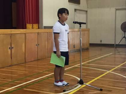 合唱の次は、全校スピーチです。1年生と3年生のスピーチを紹介します。