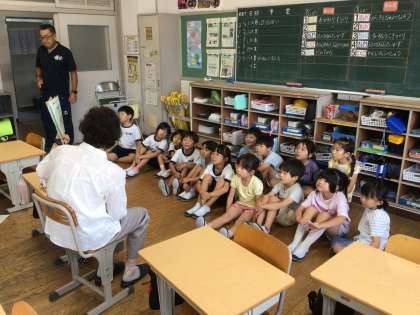 3年生の絵本は「デッカイノがやってきた」荒れた土地で、デッカイノと相棒のヤッター鳥が活躍して自然が再生していきます。再生のきっかけとなる活動が、とても面白いお話しでした。