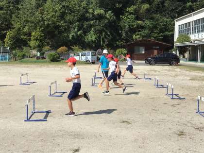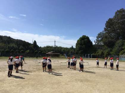 2時間目の運動場です。中学年がハードル走の練習をしています。爽やかな秋晴れで、児童は気持ちよさそうに練習に取り組んでいます。空気は爽やかですが直射日光が当たると、暑くなりますので途中で水分補給休憩を取りながら練習をしていました。