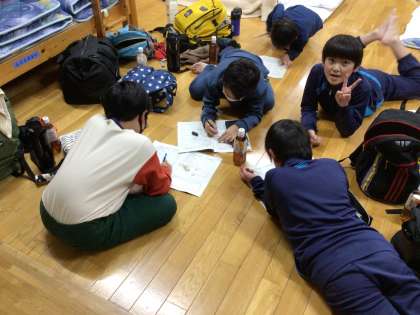 一人ひとりが1日を振り返ります。力を発揮できたことや印象に残った出来事、明日の課題を書き留めています。明日も充実した活動ができるように、この後は就寝準備に入ります。