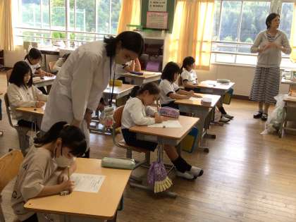 北部給食センターから田口栄養教諭をお招きして、3年生が食育の授業を行いました。授業のめあては「3つのグループの食べ物をバランスよく食べよう」でした。授業の終盤には、「苦手なものも少しずつ食べられるようにしたい」「グループを理解して好き嫌いせずに食べたい」「残していたけど、授業で学んだ三角食べをする」など、立派に感想を述べることができました。