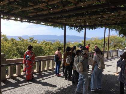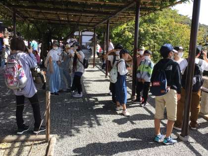 昼食を終え、清水寺観光を始めました。全員で清水寺を1周します。子どもたちが楽しみしている滝の混み具合はどうでしょうか。