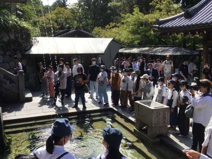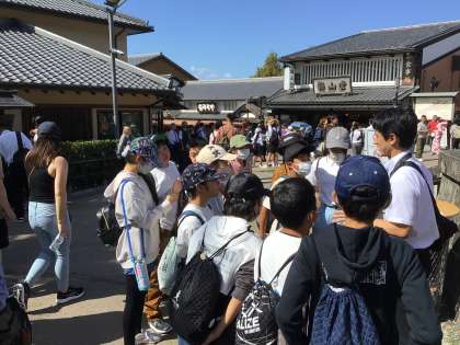 音羽の滝で、思い思いの水を飲み、いよいよ楽しみにしているお土産探しに向かいます。ここからは4人の班になって活動します。