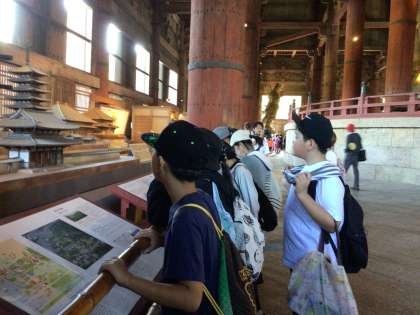 大仏殿を参観しています。大仏はもちろん、施設の大きさに子どもたちは驚き、見上げています。