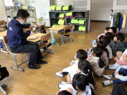 今朝は教職員による絵本の読み聞かせ「パンダの会」を行いました。私も1年教室に向かうと、大歓迎され、気持ちよく絵本を読むことができました。生き物が大好きな1年生には、カメレオンとネズミが主人公の2冊の絵本を読みました。同じ作者の作品で、図書室にある他の作品も子どもたちは知っているようでした。興味を広げ、他の作品を借りに図書室に向かってくれると嬉しいです。