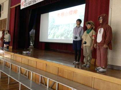 5時間目は5年生の舞台発表を参観しました。一人ひとりが担当する、とても多くて長いセリフを5年生は割と苦労もせずに覚えたそうです。すごいです。日頃の丸根山調査活動や、稲武の面ノ木峠での体験を分かりやすくまとめ発表します。学校の周りの豊かな自然を5年生の舞台発表から再確認できます。