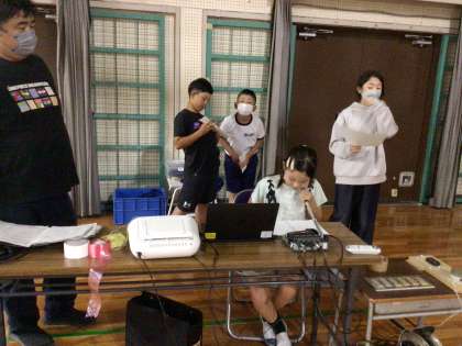 昼の休憩時間に放送委員の5•6年生が体育館に集まっていました。第2部児童発表の冒頭に流れる解説を担当している児童たちです。明日の全校リハーサル前の確認をしていました。真面目に練習しています。リハーサルそして式典当日と、堂々とアナウンスができるでしょう。