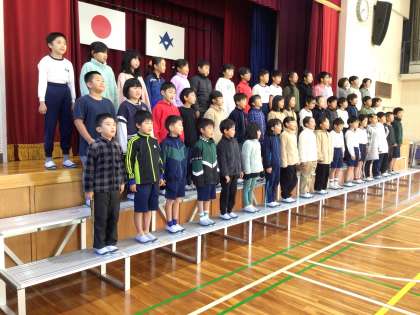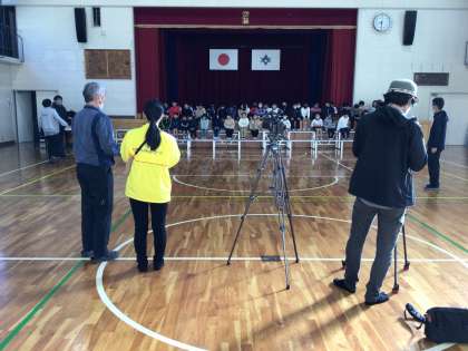 今日は西広瀬小学校の生活をひまわりネットワークが撮影します。登校シーンの撮影に始まり、今は全校合唱を撮影しています。式典で披露しました「水のハーモニー」です。今日は1日撮影し、放映は12月2日の予定です。