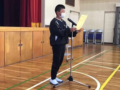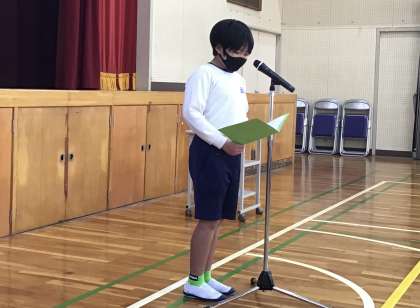全校朝の会にて、2名の児童がスピーチを行いました。