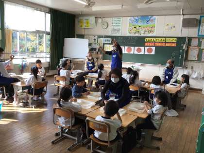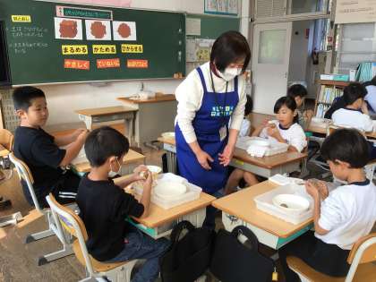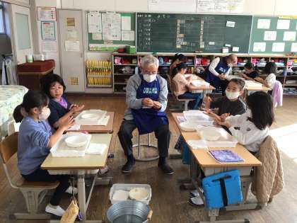 ものづくりサポーター25名が来校し、各教室に分かれて「身の回りの自然にあるものを生かしたものづくりの楽しさを体感するプログラム」を実施しています。材料は小原陶土を使い、粘り強く作業を進めています。