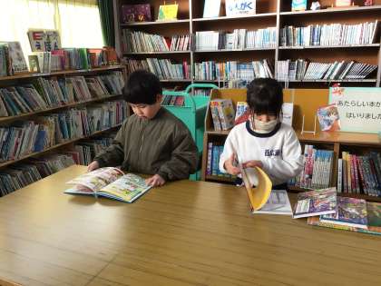 冬休み用の図書の貸し出しが始まりました。一人5冊借りられます。1年生は朝の学習タイムを使って、本を選んでいました。早く読めた人は、冬休み中でも職員室を訪ねて、本の返却と貸し出しをすることができます。
