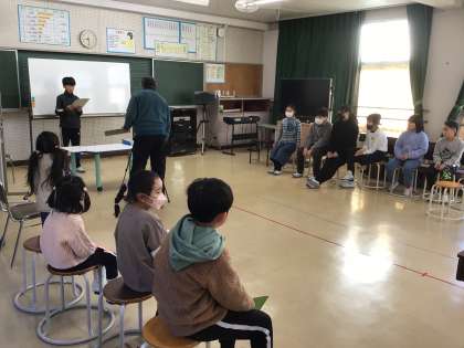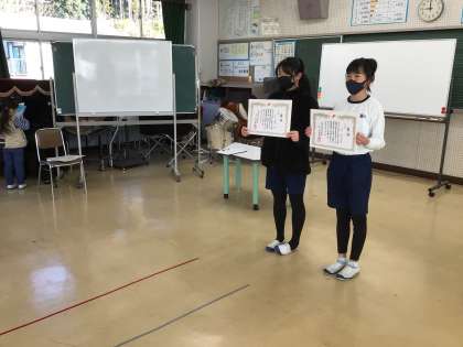朝の気温が下がってきましたので、全校朝の会を音楽室から各教室に配信するよう準備しました。児童会長や司会者、表彰受賞者、スピーチ担当者が音楽室に集まりました。タブレットを使えば、どこからでも配信できます。