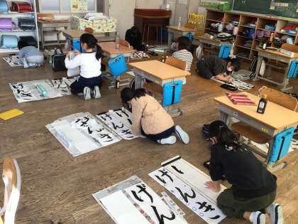 3年生から毛筆を使います。課題の、元気や明るいなどの字に、新年の抱負を込めて書き上げてほしいです。