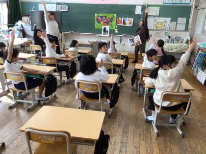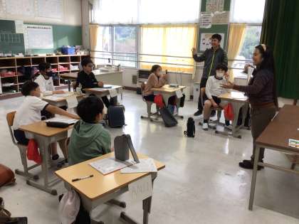 西広瀬小学校のALTはジョニ先生に代わりました。今日は2・5年生の授業でした。テキサス州出身であることや、日本の食事が大好きで、特に広島焼きが好きだと英語で自己紹介されました。