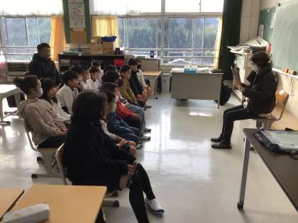 4年生は「ぼたもちばあさん」です。ぼたもちを食べたいお婆さんとお嫁さんのユーモラスなやり取りが楽しい紙芝居でした。