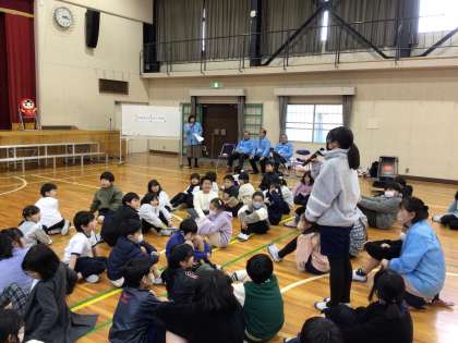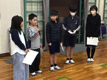 人権擁護委員さんをお迎えして、人権移動教室を行いました。会の進行は福祉委員会の児童が担当しました。点字ブロックやヘルプマークなど、困っている人の助けとなるユニバーサルデザインを学びました。会の感想を述べる場面では、「高学年として困っている子を見かけたら助けたい」などと、多くの児童が挙手をして意見を発表していました。