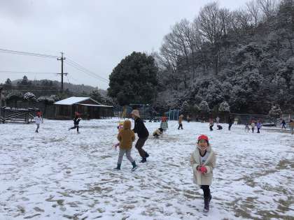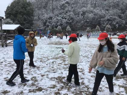 暖かかった昨日から天気は急変し、今朝の西広瀬小学校は雪景色です。運動場に積もった雪を見て、朝からそわそわしていた子どもたちは担任にお願いして、雪遊びの時間を作ってもらいました。