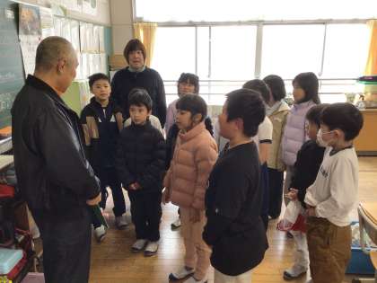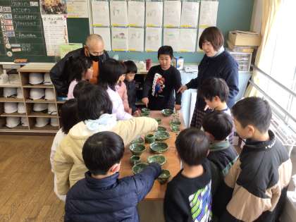 12月11日、陶芸家の石黒さんに教えていただき制作した陶芸作品が届きました。作品を包んでいる新聞紙が外され、机に並べられると、自分の作品はどれだろうと、子どもたちは嬉しそうに探していました。