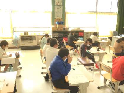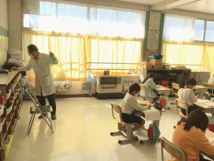 学校薬剤師さんに依頼し、環境衛生検査を定期的に行っています。教室内の照度や二酸化炭素濃度を計測し、西広瀬小学校の学習環境が基準を満たしているか、確認をしました。結果は問題なしでした。感染症対策として、冬場でも十分な換気を心掛けています。