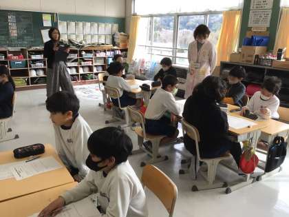 北部給食センターから栄養教諭を迎え、4年生が食育の学習を行っています。まず、献立表から豊田市産の食材を探しました。「1日に必ず豊田市産の食材がある」「豊田市産は野菜が多い」など気付いたことを発表しながら、授業のテーマ「給食に豊田市産の食べ物を使うのはなぜか」を考え始めました。授業後半の共有でどのような考えが発表されるか楽しみです。