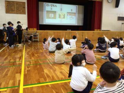 クイズにすらすら答える子どもたちの姿に、普段から本に親しむ様子が伝わりました。最後の校長の話では、今年度図書の寄贈を受けたことを児童に紹介しました。「子どもたちに本に親しんでほしい」との寄贈者からのメッセージを伝えました。