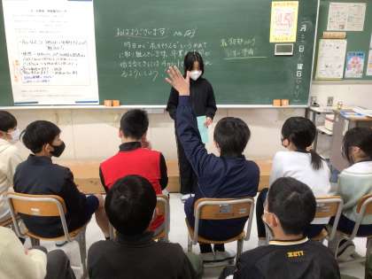6年生の発表者は卒業を意識してか、1年間の出来事と4月からの抱負を発表しました。特に思い出に残る行事は修学旅行だそうで、観光地を具体的に挙げて紹介しました。5年生を意識した発表でしたので、5年生からの質問や感想が多く寄せられました。