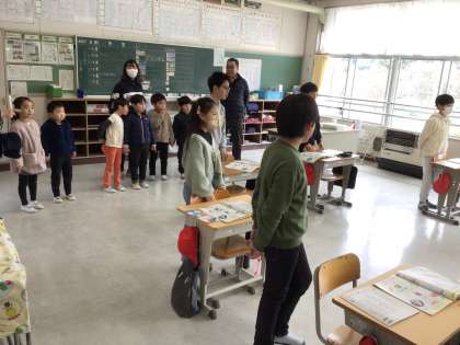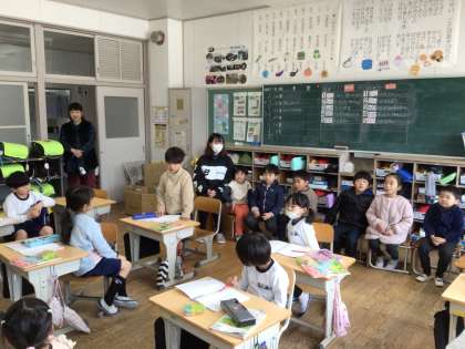 透成こども園の年長児が見学に訪れました。トイレをはじめ本校の施設を見学した後は、各学年の授業を参観しました。算数や外国語の授業の様子を、年長児は大変落ち着いて見学しました。
