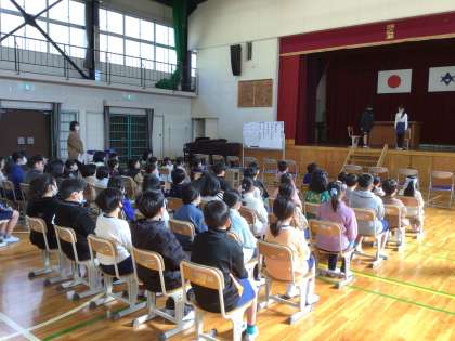 今日より卒業式の練習が始まりました。2時間目は在校生の練習です。5年生に見本になってもらい、姿勢の確認をしました。学校行事の中で最も大切な行事であり、児童が体験する数少ない、日本古来から伝わる儀式の形をとる行事が卒業式です。卒業をお祝いする気持ちを、呼びかけの言葉や合唱の声で表現してほしいと思います。