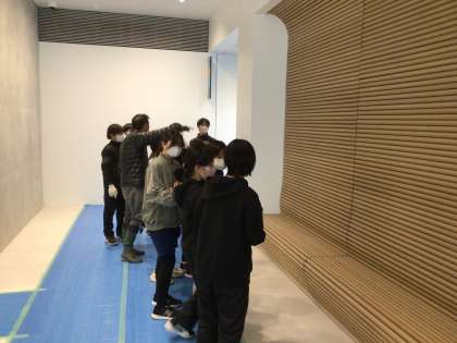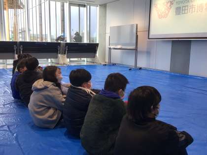 特別に館内に入ることができました。会議室にて植樹の仕方を学び、トイレに行き、いよいよ植樹の作業が始まりました。