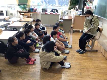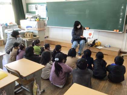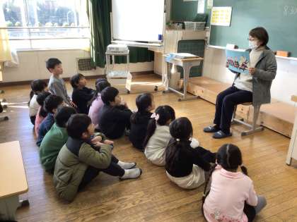 今朝はほたるの会による絵本の読み聞かせがありました。今年度最終の会でした。紙芝居のいも転がしや機嫌の悪いコックさんのお話を、低学年の児童は楽しく反応しながら聞きました。