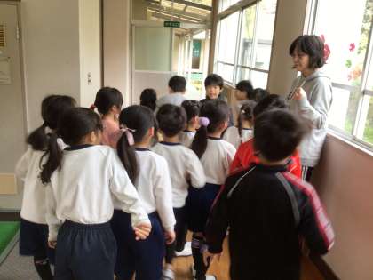 2年生が玄関に集まっていましたので、様子を見ました。下駄箱の靴を整頓していました。自分の靴を整えた後は、他の子の靴も整頓していました。