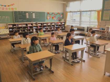 1年生は、朝の会を始めるところでした。担任から良い姿勢を褒められていました。