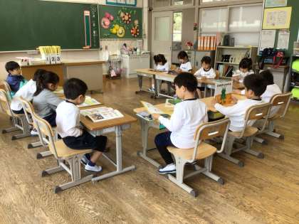 1年生教室の座席の向きが変わっていました。「意見を発表する時に、皆の顔が見える」と児童から好評のようです。この後、1時間目に算数の授業があります。生き生きと発表しながら数を学ぶ姿が見られそうです。