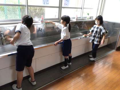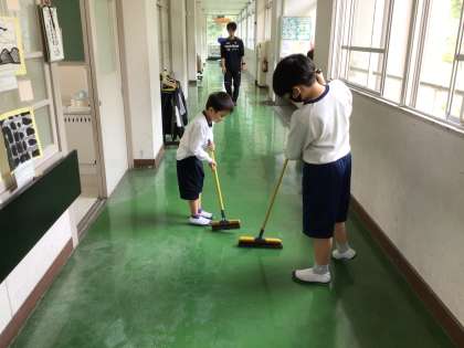 月・水・金曜日は縦割り班で掃除をします。昨日の1年生を迎える会での縦割り班で協力した経験が生きており、作業の連携ができています。1年生が初めて取り組む活動は、高学年が手本を見せてくれています。