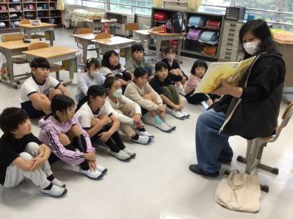 3年生は、猫みたいな犬が主人公のお話でした。大阪弁の語り口に、子どもたちは楽しく聴きました。