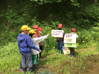 稲武小の5年生と交流学習をしています。今日は西広瀬小の環境教育を伝えようと、5年生の児童は準備をしてきました。ビオトープでクイズラリーをし、体育館で矢作川の透視度測定とパックテストを実演するなど、日々の活動を紹介しました。1時間半の交流時間に、たくさんの情報を伝えようと、努力の跡がたくさん感じられました。第2回目の交流は、稲武地区で実施する計画です。