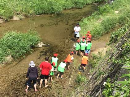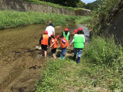 2時間目に4年生が飯野川に出かけました。明日の環境整備活動の準備の一環です。階段の降り場は、昨日担任が草刈りを行い、安全に児童は川に入ることができました。今日は餌を仕掛け、明日保護者と一緒に成果を確認します。ミニ水族館の仲間を増やすか、明日の活動の展開が楽しみです。