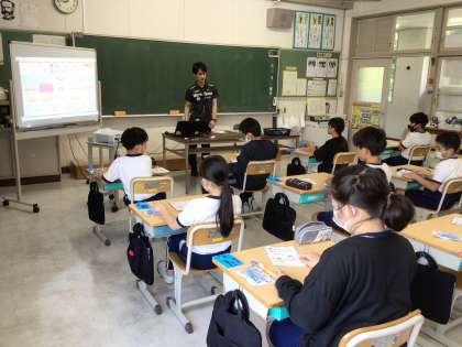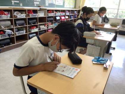 全国小学生歯みがき大会に参加しました。大会参加と言っても、協会から送付された冊子を使い、動画の解説により教室内で活動する授業です。全国には歯肉炎にかかる児童が40%もいることを知り、自分の歯の健康を真剣に児童は考えていました。