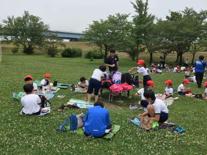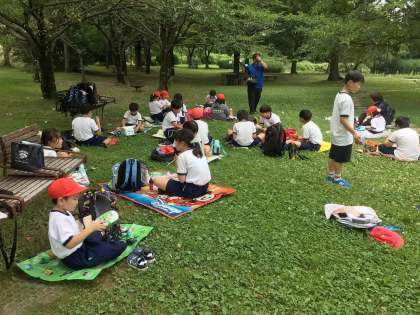 水族館を出て、班で決めた昼食場所に向かいました。多くの班は芝生広場を選んだようです。天気は曇りで、暑さはそれ程感じません。お弁当をいただきます。