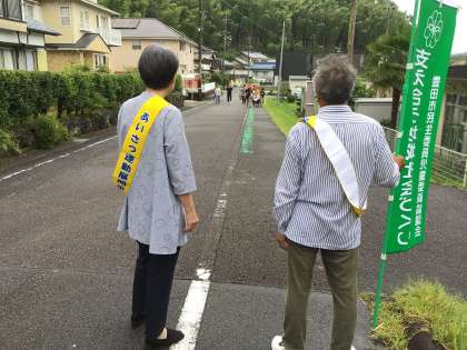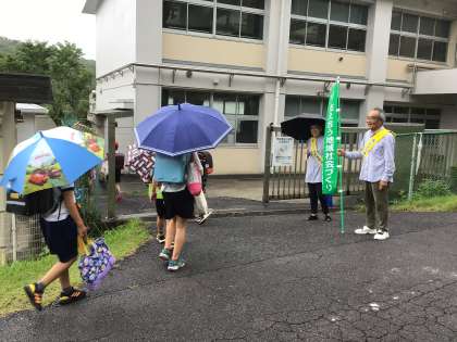 民生児童委員さんによる、登校の挨拶運動「愛の一声運動」です。本校北門で児童の登校時に、「おはようございます」と声をかけながら登校の様子を見守ってくださいました。コロナ禍で、すっかり挨拶の声が小さくなっています。クラスや全校合唱の声量は戻ってきましたので、もう一息です。