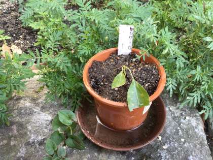 7月10日に挿木したクスノキのうち、1本が生長を続けています。今日は5年生の教室で鉢替えをしました。ひと回り大きな鉢に腐葉土を入れましたので、このまま大きく育ってほしいと思います。また切り株から新芽が出たら、5年生と一緒に新たに挿木をする計画です。
