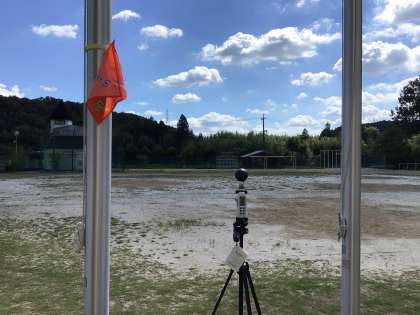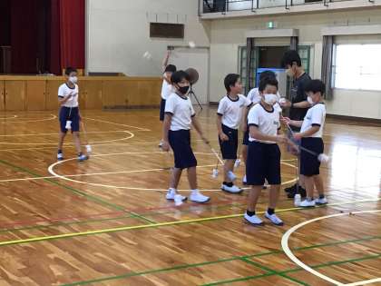 気温が上がりWBGT指数が31を超えましたので、運動場での活動を禁止しています。写真のように赤い旗を掲げる合図としています。少し気温が低い体育館では、5年生がトーチワークの自主練習を行なっていました。キャンプ当日まで、まもなく1ヶ月です。