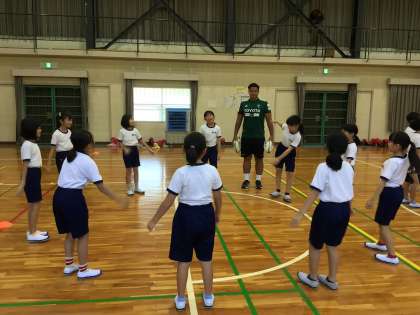 トヨタ自動車ベルブリッツから2名の講師が来校し、3・4年生にタグラグビーを指導してくださいました。ラグビーとタグラグビーではタックルの仕方に違いがあることや、パスの仕方を講師から教えていただいた児童は、チームを組みパス練習に取り組みました。「パス」「トライ」大きな声を出してプレーすることも大切だと教えていただき、児童は元気にプレーしました。