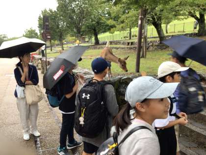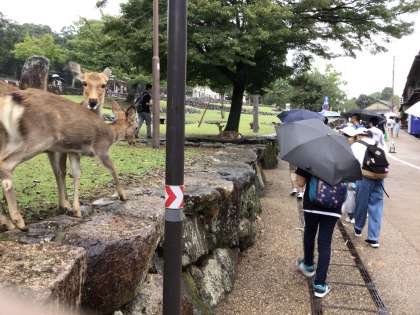 若草山でお土産を選んだ後は、鹿せんべいを買って、鹿との触れ合いを楽しんでいます。