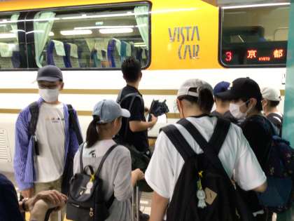 春日大社から近鉄奈良駅に移動しました。京都駅へ向かう特急列車を探しています。2階建ての車輌のようです。奈良から京都の移動が楽しみです。