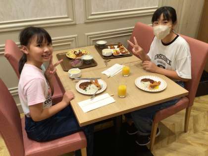 子どもたちが最も楽しみにしていた時間ではないでしょうか。ビュッフェスタイルで、料理を取り揃えました。ソフトドリンクとデザートもつきます。