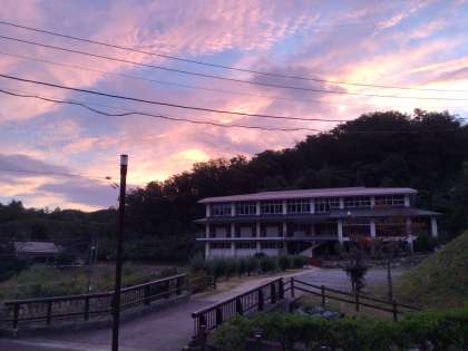 涼しく爽やかな朝を迎えました。児童は皆6時に起き、朝の集いに向けて、身支度を整えています。