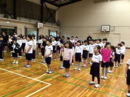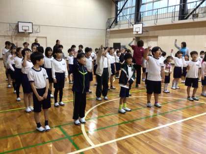 全校合唱と後期委員の認証を行いました。今年の運動会では、応援合戦を計画しています。紅組と白組がそれぞれ応援歌を歌い合います。配置等は今後、組別に練習をしていく事でしょうが、全校朝の会では歌の部分が披露されました。