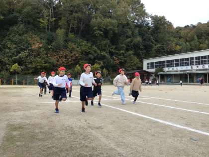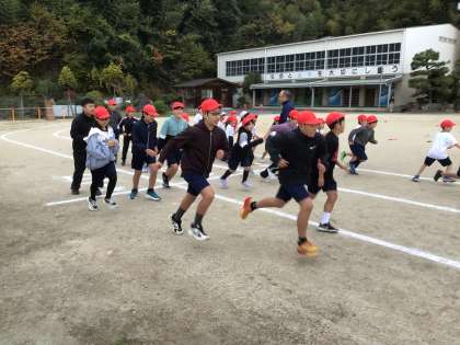 今日のプログラムは短縄跳びと持久走です。6年生が切り返し跳びの模範演技をすると、挑戦する多くの児童がいました。持久走は自分のペースで走り続けます。ライバルを見かけると、ちょっと走る速さを上げている児童もいます。校長も一緒に走りました。今日は風が強いですが、気温は高く、気持ち良く走れました。
