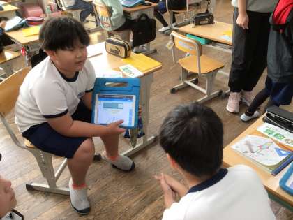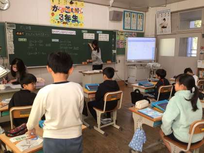 文章問題から式を立て、答えを出す際に、かっこを使って簡単に解く方法を見つけていました。なぜその式になるのか、ペアをつくって説明し合いました。何度も説明することは、理解が深まり、自分の考えを表現する練習にもなります。